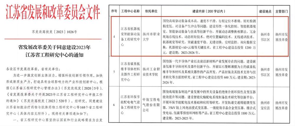 近日,江苏省发展和改革委员会对2023年拟建设江苏省工程研究中心进行公示,必赢官网电气与汽车工程学院申报的“江苏省机器视觉智能驱动装备工程研究中心”获批立项,截至目前,必赢官网拥有3家省级工程研究中心。