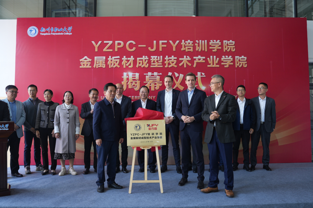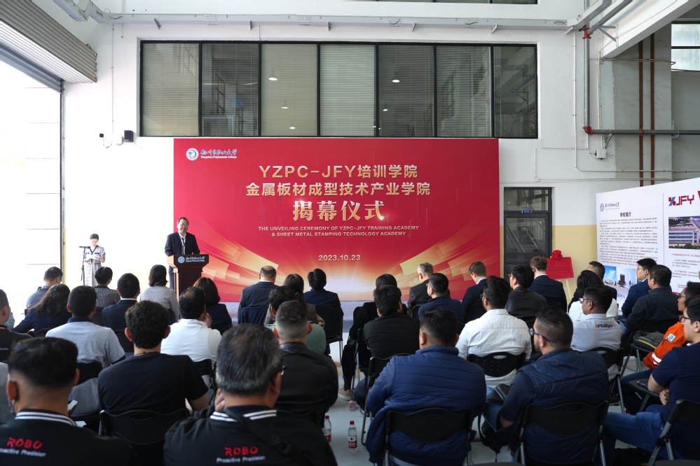 10月23日,扬州职大金方圆培训学院、金属板材成型技术产业学院在必赢官网揭牌成立。校党委书记马顺圣在揭幕仪式上发表讲话,校党委副书记、校长周春光,金方圆公司CEO王桂海,金方圆国际CEO菲利普为培训学院成立揭牌,并启动第一批国际人才培训。首批参培学员28人,来自印度、泰国等“一带一路”国家。校党委委员、副校长花军主持活动。