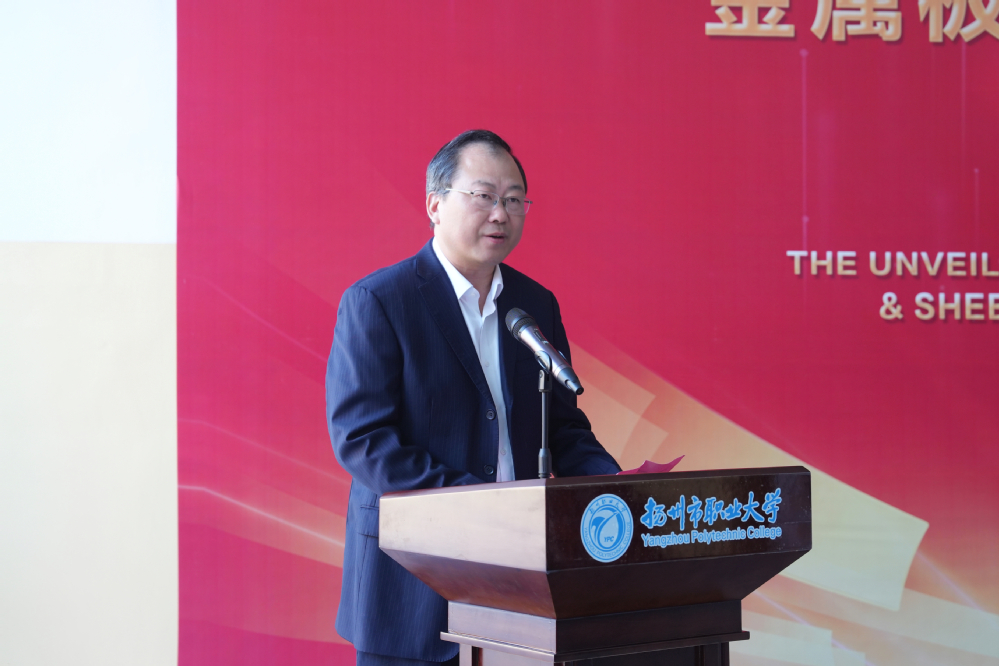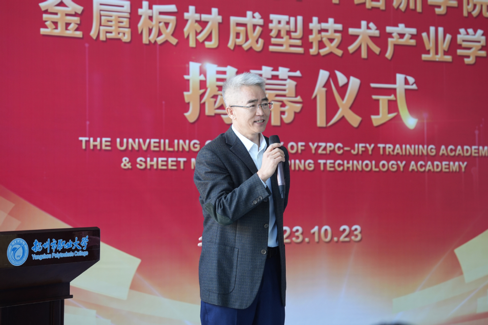 校党委委员、副校长吴书安介绍学校和金方圆公司在人才联合培养及扬州职大-金方圆培训学院建设情况。他指出,YZPC-JFY培训学院,是在校企双方多年深度合作的基础上,响应国家制造强国战略,紧密对接扬州金属板材加工装备产业链,服务地方经济,培养行业高素质技术技能人才的生产型智能化实训平台。