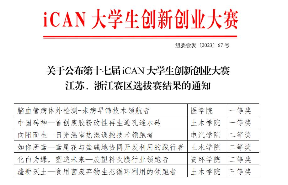 近日,第十七届iCAN全国大学生创新创业大赛江苏、浙江赛区选拔赛在苏州科技大学圆满落幕,必赢官网学子以新颖的创意和不懈的拼搏,经历网评、决赛路演和答辩等环节,从众多知名本科高校中脱颖而出,共获得一等奖2项,二等奖3项,三等奖1项,共计6项省级奖项。
