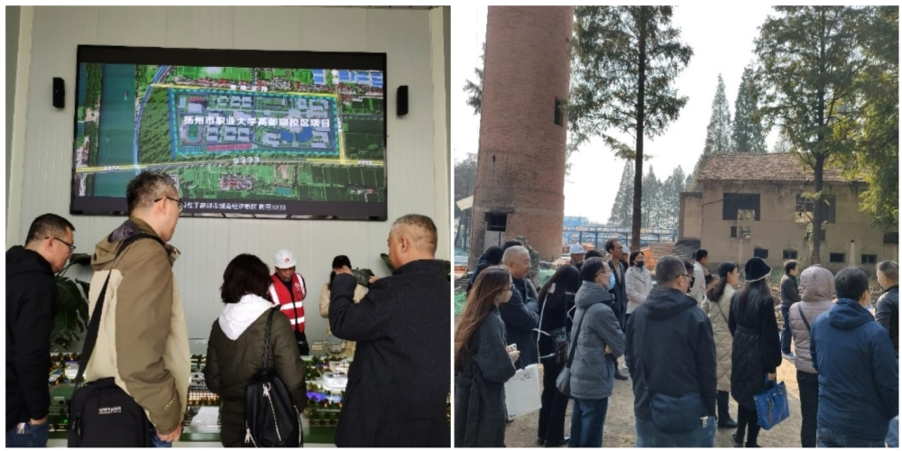 高邮湖校区紧邻省道S333,计划总投资为17.96亿元,总用地面积570亩,总建筑面积约15.7万平方米,设立7个学院、200个班级,可满足7000人规模的在校生使用需求。校园整体规划方案由东南大学韩冬青教授团队设计,预计2023年底,项目主体将全面竣工。据现场项目经理介绍,该项目中采用了BIM技术辅助施工管理,教学楼结构采用了装配式钢节点混合框架结构,这种新型装配式混合框架结构体系由预制钢筋砼梁身、柱身与钢连接节点构成。通过参观学习,大家进一步加深了对装配式砼结构施工技术和建筑业高质量发展的理解,为产教融合、科教融汇奠定了基础。
