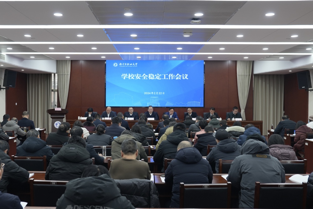 为切实做好2024年校园安全稳定工作,进一步压实工作责任,强化工作措施,营造良好的校园安全环境和氛围,确保校园安全稳定,2月22日,学校召开2024年安全稳定工作会议。校党委书记马顺圣,党委副书记、校长周春光发表专题讲话,会议由党委委员、副校长花军主持。全体校领导出席,学院、部门主要负责人及相关人员参加会议。
