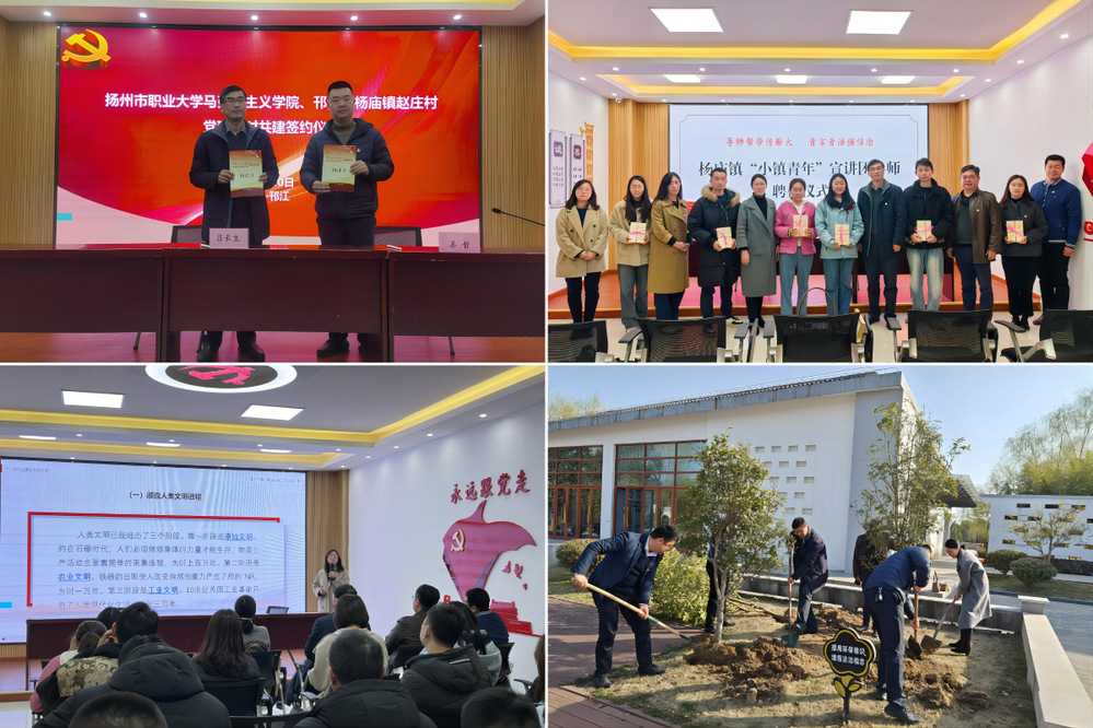 烟花三月,春意盎然。3月20日,马克思主义学院与杨庙镇赵庄村党建共建签约仪式暨植树活动在杨庙镇扬州环保教育基地举行。
