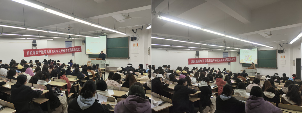 为持续优化育人环境,营造积极向上、求真笃实的学习氛围,赋能学生成长成才,助力学校高质量发展,3月25日,纺织服装学院开展学风建设年及文明修身工程启动仪式。学院全体学工老师参加了启动仪式,党总支副书记沈兆侠解读了学院学风建设年及文明修身工程的具体方案,党总支书记段七零做了动员讲话,学生代表递交了学风建设承诺书以及文明修身承诺书。