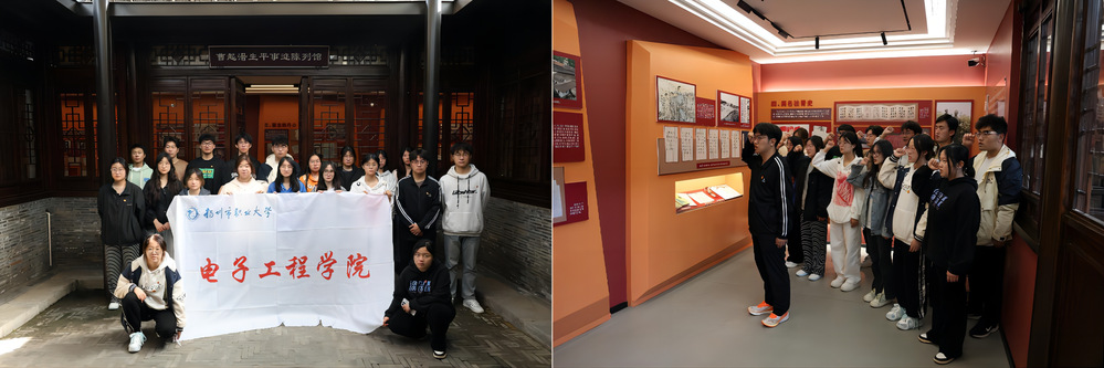 电子工程学院将团课搬到红色教育基地,通过沉浸式体验革命先烈英雄事迹,坚定了团员青年跟党走的信心和决心,增强了同学们爱党爱国的政治热情,为中国式现代化建设中的青年担当积蓄了职大力量。