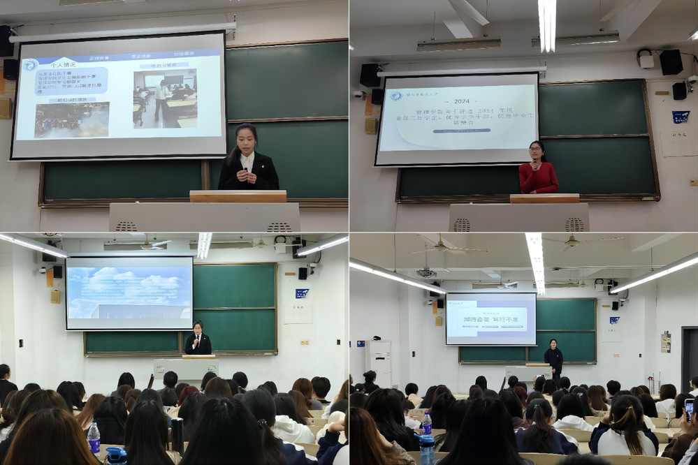 各位候选人通过PPT展示的方式,分别从思想品德、学习成效、科研竞赛、社会实践、志愿服务等方面进行汇报。候选人在陈述过程中情绪饱满、自信从容,将自己的成长、收获与感悟娓娓道来,充分展现了管理学院学子品学兼优、奋发向上的风貌,为学院学子树立了良好的榜样,他们精彩的答辩赢得了老师和同学们的掌声。评委老师结合学生的材料和实际情况,进行逐一点评,并提出针对性的建议。