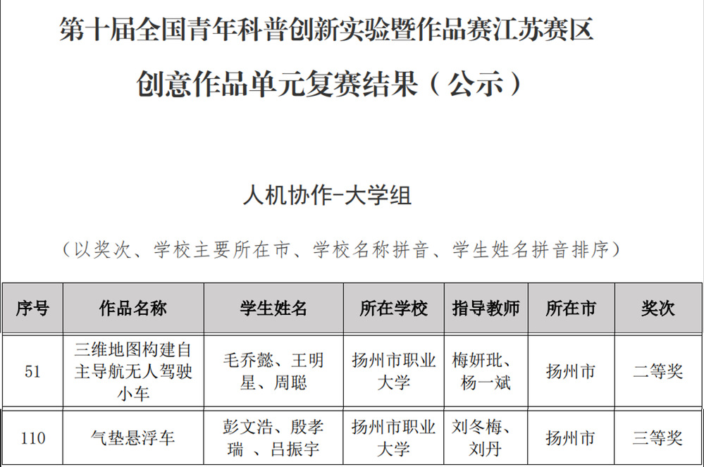 近日,由江苏省科学技术协会和共青团江苏省委共同主办,江苏省青少年科技中心承办的第十届全国青年科普创新实验暨作品赛江苏赛区创意作品单元复赛落下帷幕。电子工程学院2件作品入围省复赛答辩,并荣获二、三等奖。