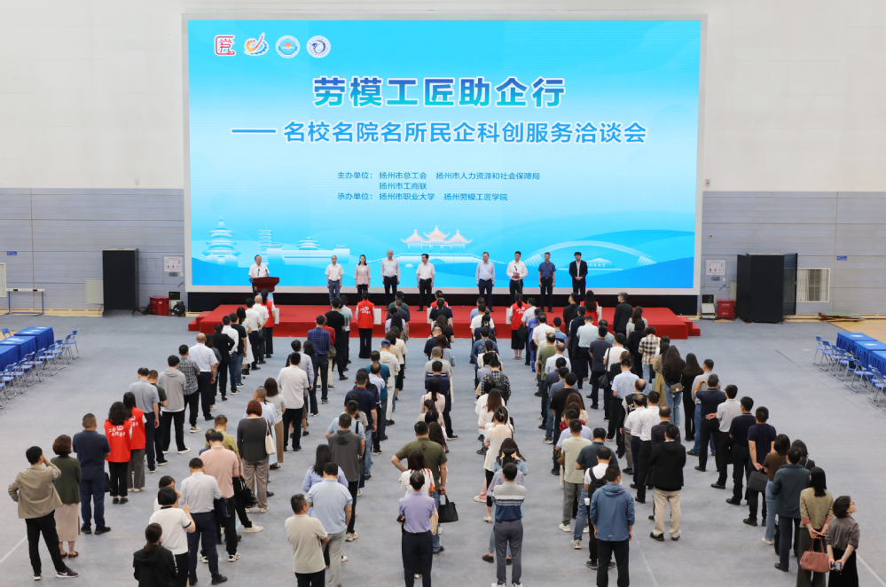 扬州市人大常委会副主任、党组副书记,市总工会主席韩方出席活动并宣布洽谈会开始。