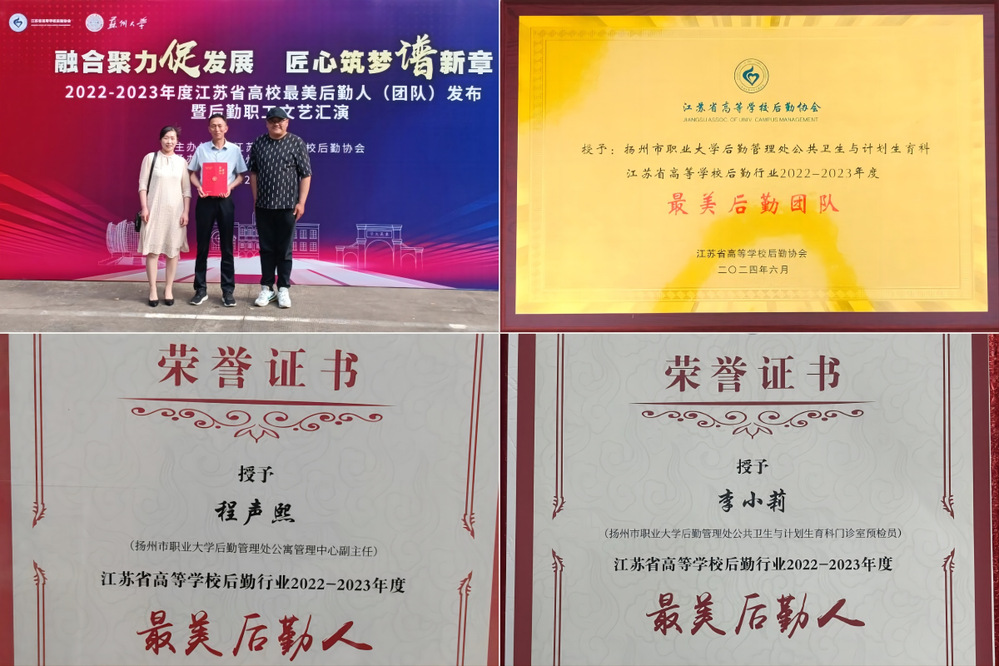 6月2日,由江苏省高等学校后勤协会主办的2022-2023年度江苏省高校最美后勤人(团队)发布暨后勤职工文艺汇演在苏州大学举行。校党委委员、副校长翟星红,后勤管理处相关负责人及获奖代表参加了活动。必赢官网后勤管理处公共卫生与计划生育科荣获“最美后勤团队”称号,必赢官网后勤管理处公寓管理中心副主任程声熙、后勤管理处公共卫生与计划生育科门诊室预检员李小莉荣获“最美后勤人”称号。