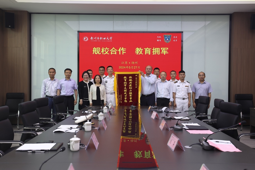 马顺圣首先代表学校对扬州舰官兵的到来表示热烈的欢迎,强调教育拥军项目不仅是一项教育教学工作,更是一份光荣的政治任务。学校坚持“党建引领,教育拥军”,创造一切条件,做好学习支持服务,为官兵助力、为政府分忧,未来学校将继续推进舰校共建工作,进一步丰富教育拥军内涵,拓展教育拥军形式,将“教育拥军”项目打造成学校特色品牌项目,为实现中国梦强军梦贡献职大智慧和力量。