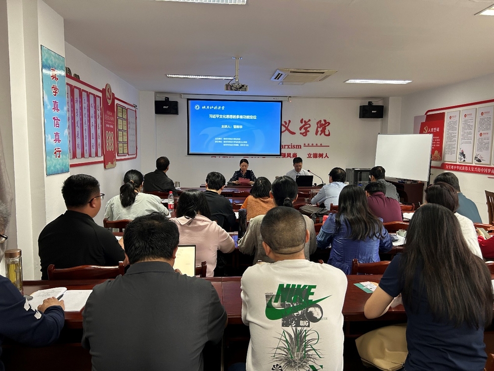 管新华从“马克思主义在中国牢牢扎根与习近平文化思想,强国建设、民族复兴与习近平文化思想,百年变局的中国答案与习近平文化思想,马克思主义与中国文化关系的五重奏”四个层面,对习近平文化思想进行了深刻阐述和细致解读。他表示,习近平文化思想作为习近平新时代中国特色社会主义思想文化篇,以马克思主义文化理论和中华优秀传统文化为总体指引,闪耀着马克思主义真理光芒,充盈着中华文化独特气韵。立足世界之变、时代之变、历史之变,回应普遍关切、提供全新选择,既肯定文明交流互鉴是推动人类文明进步和世界和平发展的重要动力,又系统回答了新时代坚持和发展什么样的中国特色社会主义文化、怎样坚持和发展中国特色社会主义文化等重大课题。作为高校教师,要切实把习近平文化思想贯穿于教学科研当中,更好地担负新的文化使命,使中华优秀传统文化同马克思主义的结合迈向更高境界。