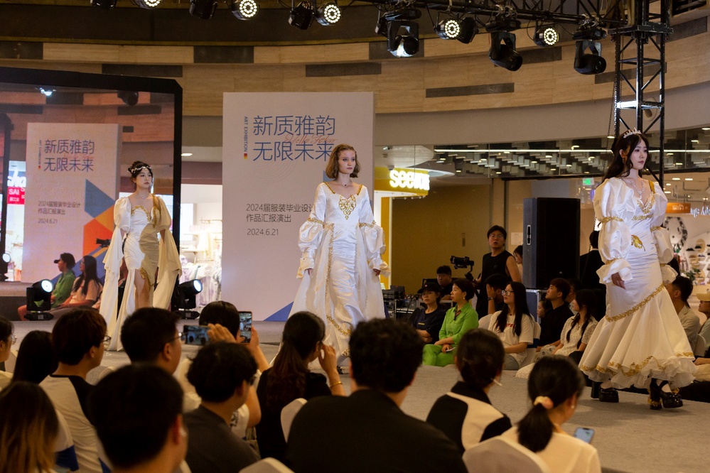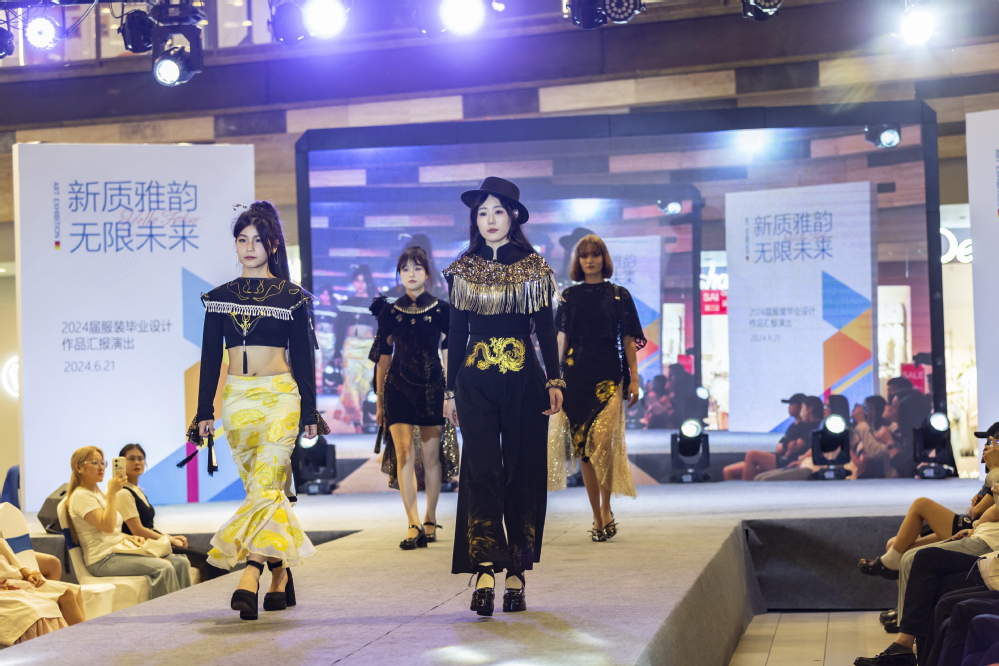 本次活动展出了来自2024届25个系列100余套服装毕业设计作品,作品由“新中式—中韵西裁”和“现代时装—自由行走”两大主题组成。所有作品从面料辅料的选购、款式设计、制版和工艺都由毕业生完成,他们用纷呈各异的艺术设计表现手法,以布帛为载体,展示出对服装传统文化和时尚青春的理解与追求。整个展演活动历经一个小时,精彩的模特走秀伴着律动的音乐不断地给观众带来惊喜和震撼,现场掌声不断,纷纷为学生的创意设计和模特的表现喝彩叫好。