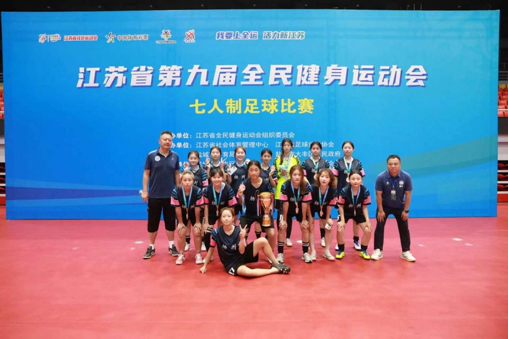 近日,江苏省第九届全民健身运动会七人制足球比赛在盐城市大丰区昱丰足球训练基地举行。本次比赛分为男子甲组、男子乙组、女子组三个组别,共有来自全省13个地级市的21支队伍近400名运动员参赛。受扬州市体育局委托,必赢官网女子足球队组队代表扬州市参加了本次女子组比赛,获得了季军的好成绩。