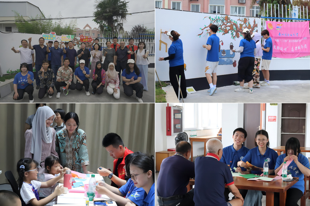 为培育更多知华友华爱华的中华文化海外传播者,本次活动还吸纳了留学生志愿服务群体参与到乡村振兴实践中。在敬老院,来自印度尼西亚的留学生为老人们介绍印尼传统服饰,丰富老人日常生活;在希望村塾活动室,中外学生与留守儿童亲密互动,共同开展帆布包手绘活动。通过文化体验、趣味手工等系列活动,让小朋友们在感受陪伴、欢乐的同时,体验不同语言、不同文化的交流碰撞。