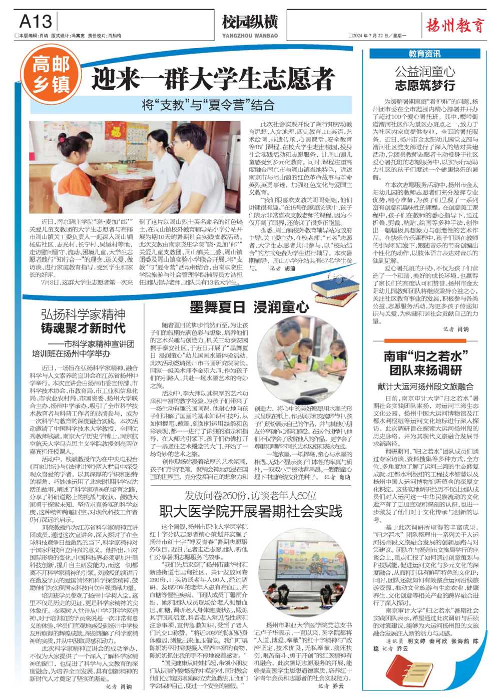 【扬州晚报】职大医学院开展暑期社会实践