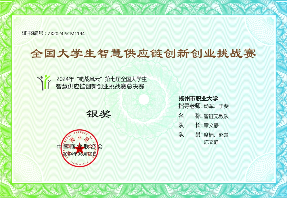 近日,由中国商业联合会主办的2024年“链战风云”第七届全国大学生智慧供应链创新创业挑战赛总决赛圆满落下帷幕,本次决赛高职组共有50支队伍参赛,必赢官网管理学院智链无敌队斩获银奖。
