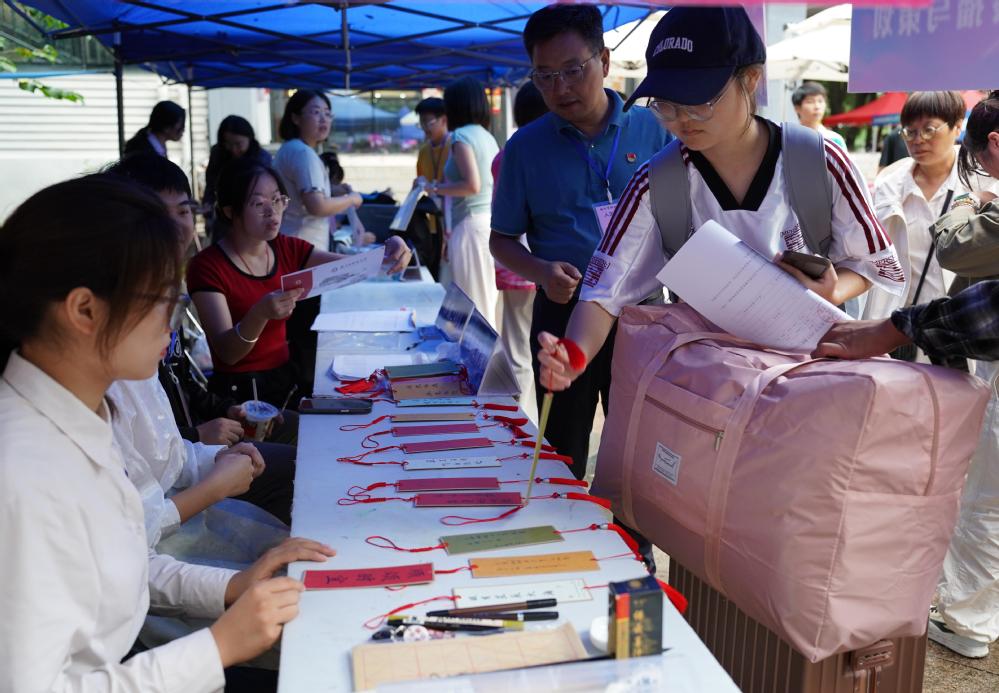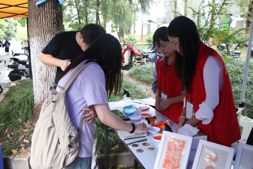 非遗文化体验,“拓”出新篇章。经贸学院特地在迎新现场设置了非遗文化体验区,现场展示拓印技艺。新生们有机会亲手体验这一古老的艺术形式,感受其中蕴含的文化魅力,又寓意着新生们在大学生活中将不断开拓新知,创新进取。