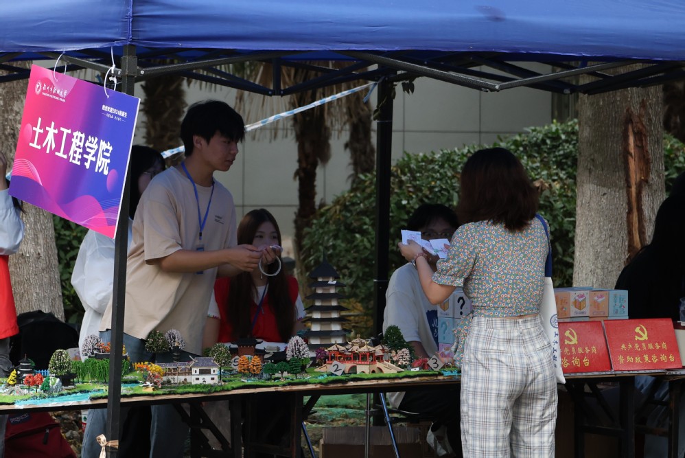 【土木工程学院】一块大木板上,扬州运河建筑山水尽显。反复试验以求达到最好效果的树脂河流,硬纸板做的大明寺和文昌阁,塑料草皮做成的沙盘,在学校附近小店淘来边角料搭成的桥……这是土木工程学院“廊桥筑梦”志愿团的8名学生耗时大半个月制作出的运河建筑3D沙盘,更是土木工程学院团委为2024级新生准备的一份入学惊喜。