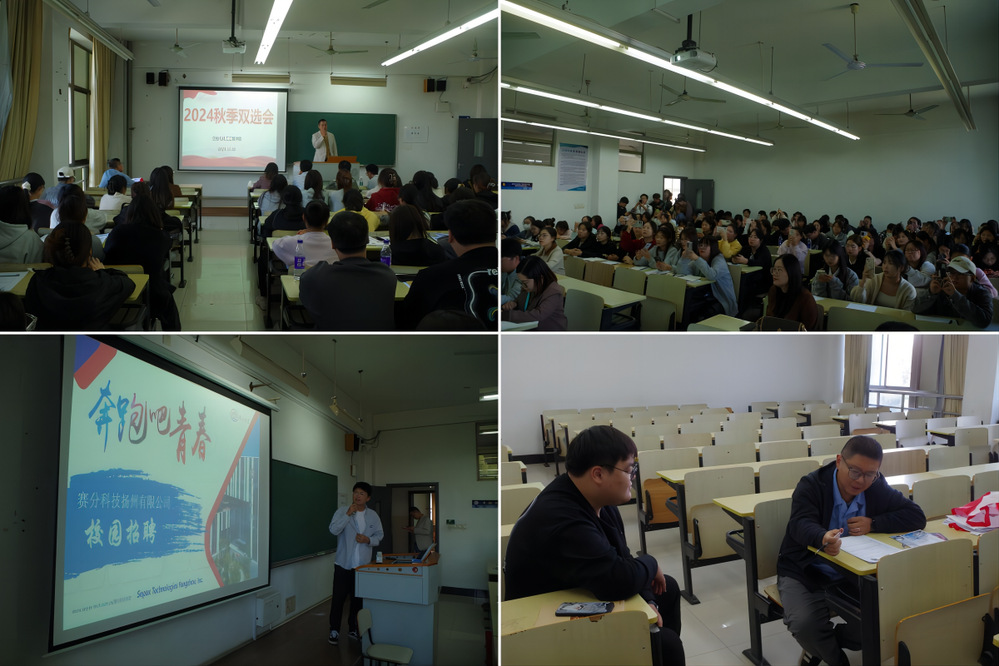 为做好毕业生就业工作,10月9日下午,生化学院在瘦西湖校区崇文楼B310教室举办2024药品生产技术专场秋季双选会,学院师生、相关企业代表参加活动。此次双选会吸引了扬州联博药业有限公司、江苏联环药业股份有限公司、江苏艾迪药业股份有限公司、赛分科技扬州有限公司、华润扬州医药有限公司等五家知名企业前来招聘,为2025届毕业生提供就业机会。