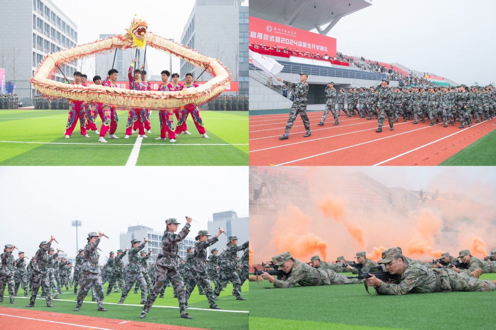 开学典礼在雄壮的国歌声中拉开帷幕,全体师生肃立,共同见证了国旗升起的庄严时刻。高邮湖校区2024级全体新生随后进行了军训成果展示,以整齐划一的步伐和铿锵有力的口号,展现了他们的青春朝气与坚强意志。