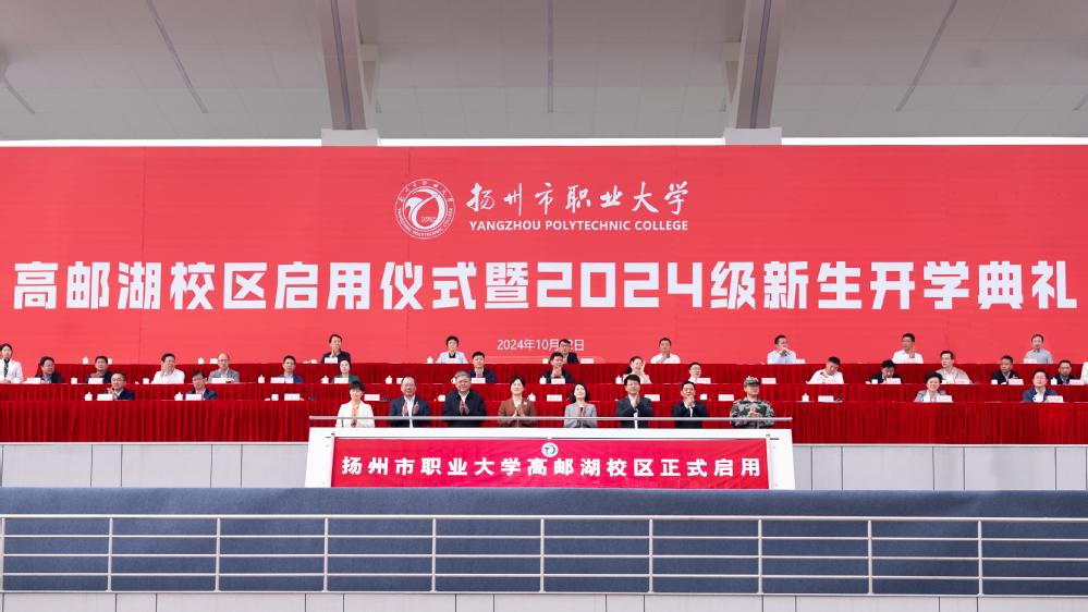 10月12日上午,扬州市职业大学高邮湖校区启用仪式暨2024级新生开学典礼在高邮湖校区田径场举行。近2000名2024级高邮湖校区新生满怀憧憬,开启逐梦扬帆的崭新航程。扬州市委常委、宣传部部长张长金出席仪式并讲话,扬州市政府副市长刘流,扬州市政府副秘书长陈健,扬州市委教育工委书记、市教育局局长殷元松,高邮市委副书记、市长田醒民,扬州市职业大学党委书记马顺圣,高邮市人大常委会主任张秋红,高邮市政协主席徐永宝出席活动。典礼由学校党委副书记、校长周春光主持。