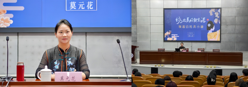 莫元花从“历史文化悠久,展现特色技艺;接捧父亲手艺,绣出广阔天地;关注特殊群体,促进就业创业;创新产业发展,迈向世界舞台”四个方面分享了她成长为江苏工匠的经历,让同学们了解到工匠的成长,不止在于技能技艺的传授,更在于匠心的传承。她也激励同学们以工匠精神为指引,发愤图强,努力学习知识和技能,实现个人目标和社会价值。