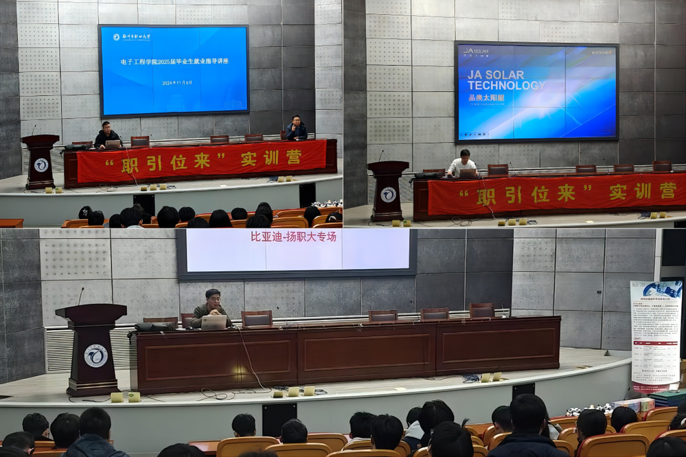 由招生就业处组织的晶澳太阳能有限公司、扬州比亚迪半导体有限公司现场开展了就业招聘宣讲活动。这两家公司就行业发展、公司环境、岗位需求、薪资待遇和晋升空间等同学们关心的话题做了详细宣讲和有针对性的解答。扬州比亚迪半导体有限公司廖经理分享了必赢官网校友成长故事,激励同学们要勇于追梦。