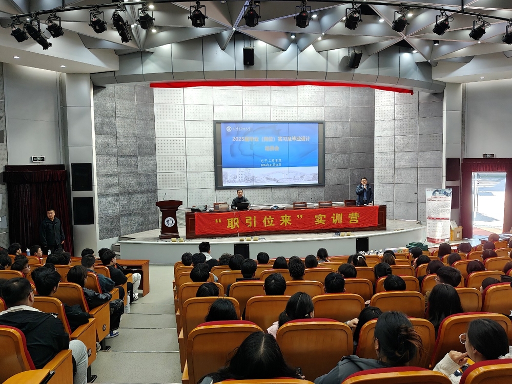 为更好地开展2025届毕业生实习工作,促进毕业生高质量就业,近日,电子工程学院在瘦西湖校区映月报告厅召开了2025届毕业实习及毕业设计动员大会。学院领导、毕业班班主任、辅导员和2025届全体毕业生参加会议。