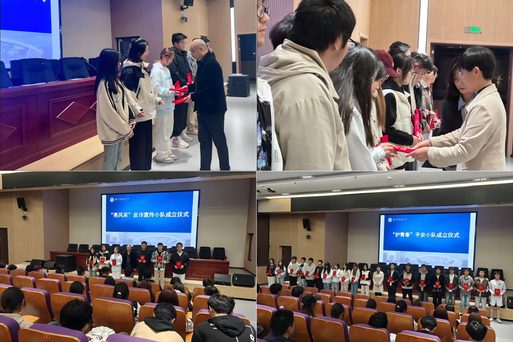 11月13日晚,电子工程学院在高邮湖校区图书馆一楼报告厅举办“护青春”平安小队、“亮风采”反诈宣传小队成立大会,学院领导、辅导员、班主任代表以及2024级全体学生参加了活动。