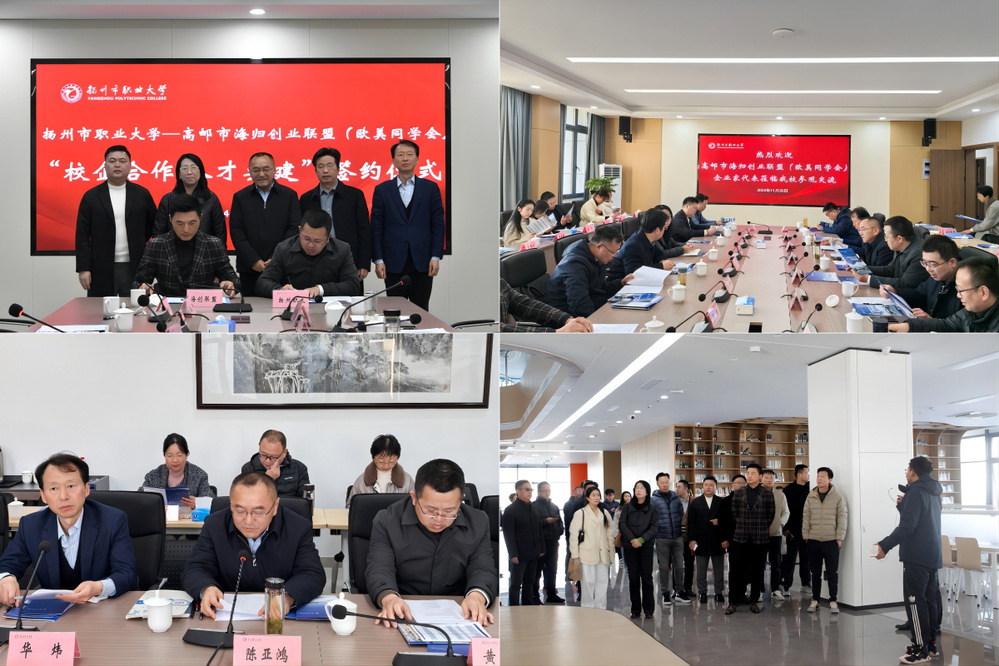 为充分发挥地方高校资源优势,加强校企合作和专业技术人才供需精准对接,将职业教育融入地方产业发展,近日,在学校党委组织(统战)部、侨联和高邮市委统战部、侨联的积极推动下,高邮市海归创业联盟20家企业负责人走进高邮湖校区,开展“校企合作 人才共育”主题交流活动。扬州市委统战部副部长戴俊芳、市委组织部高层次人才服务中心主任陈晖、高邮市侨联主席吉平参加活动。校党委副书记、高邮湖校区管委会主任陈亚鸿,党委委员、副校长、高邮湖校区管委会副主任黄瑞,党委委员、组织(统战)部部长华炜,学校侨联主席孙志林及相关部门、学院负责人参加了交流。