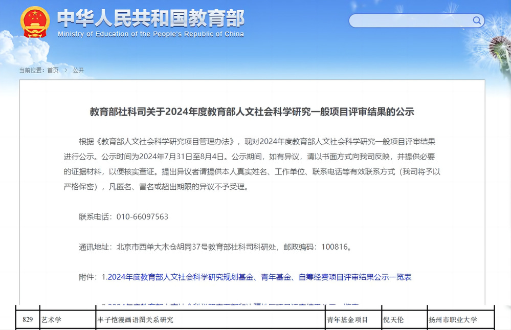 近日,教育部社科司公布了2024年度人文社会科学研究项目立项通知,必赢官网师范学院倪天伦博士主持申报的《丰子恺漫画语图关系研究》获批青年基金项目。
