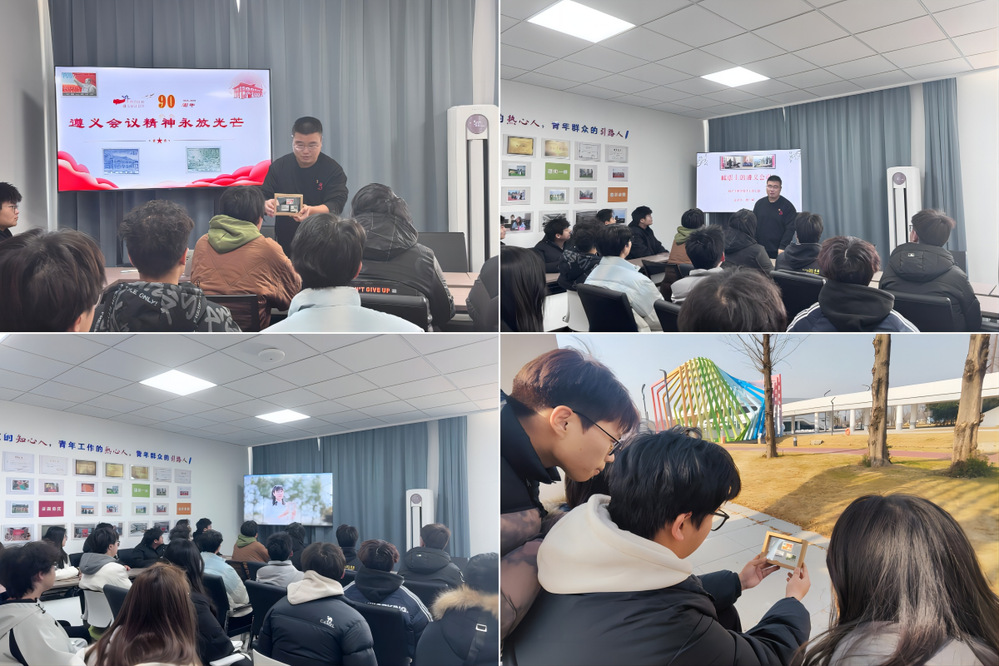 “新中国成立以来我国发行了10多枚与遵义会议有关的邮票。这些邮票彰显了遵义会议不可磨灭的红色历史文化。”杨一斌手持的1960年1月《遵义会议二十五周年》纪念邮票吸引了师生注意力,“这是新中国首次专门为纪念遵义会议而发行的邮票。”同学们争相观赏。刚刚递交入党申请书的光电2402班王琪瑞同学激动地说,“从邮票上我感受到了战火的纷飞、革命的艰辛和中国共产党的伟大,我们一定要珍惜今天来之不易的幸福生活。”