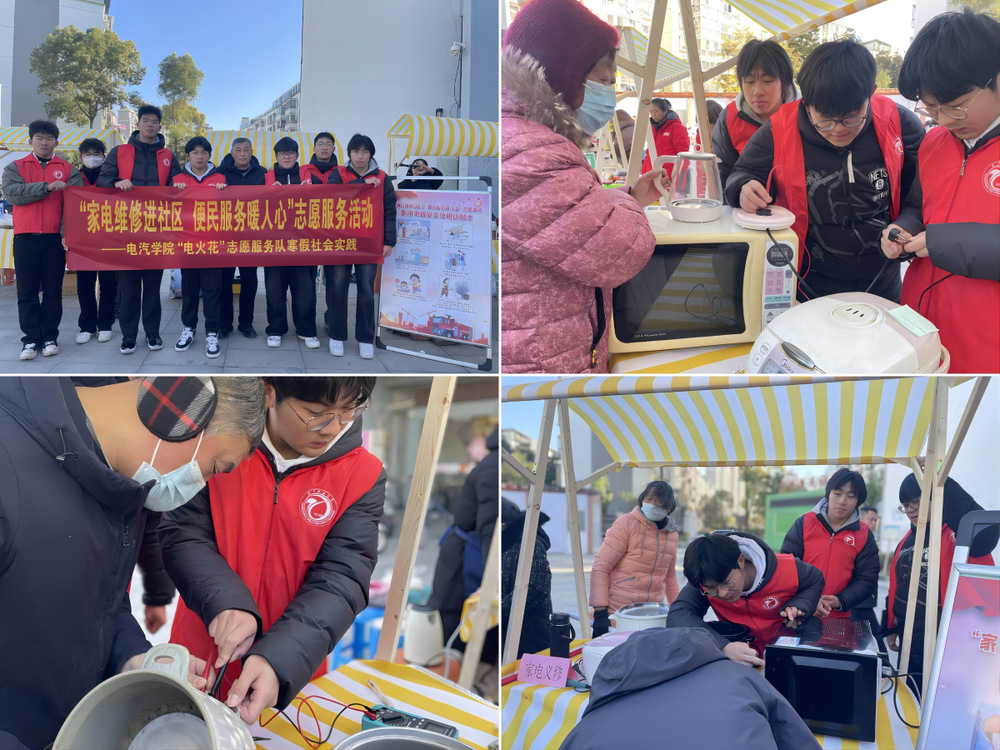 为引领广大青年学生在社会实践中“受教育、长才干、作贡献”,电汽学院组织动员全院青年学子开展形式多样的寒假社会实践活动。1月15日,电汽学院“电火花”志愿服务队走进绿杨新苑社区开展“家电维修进社区 便民服务暖人心”志愿服务活动。