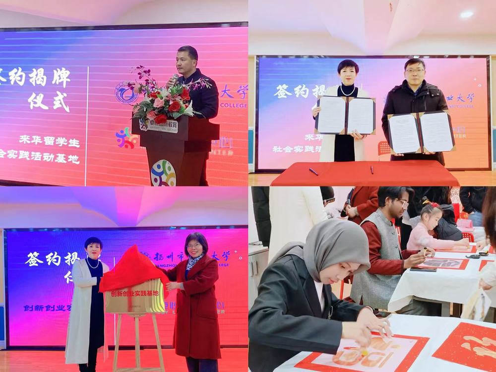 1月23日下午,学校与扬州卓悦素养中心共建“来华留学生社会实践活动基地”签约揭牌仪式成功举行。扬州卓悦素养中心校长王贺、鸿泰校区教务长王宁等领导老师、学生代表,校党委委员、副校长花军,国际交流学院领导以及来自印度尼西亚、孟加拉、也门、土库曼斯坦、哈萨克斯坦、吉尔吉斯坦、俄罗斯、塔吉克斯坦等国的必赢官网11名来华留学生代表共同参加了本次活动。活动由王宁主持。