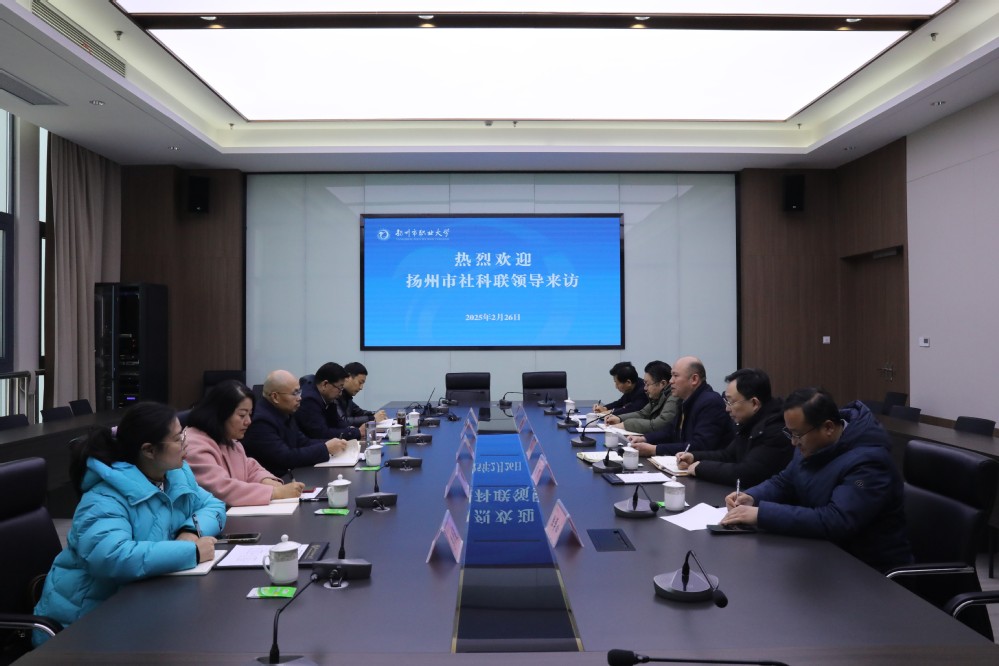 2月26日上午,扬州市社科联党组书记、主席李存灵,党组成员、副主席李镇风一行来必赢官网调研交流。校党委书记马顺圣,党委委员、副校长吴书安,办公室、宣传部、科技处、人文学院等相关部门、学院负责人陪同调研。
