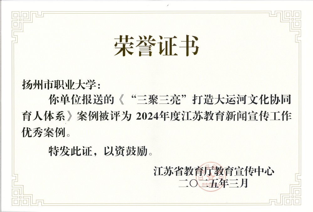 2025年是“十四五”规划收官和“十五五”规划谋划之年,也是加快建成教育强省全面布局、高位推进之年,做好教育新闻宣传工作至关重要。学校将持续推进“大运河文化进校园”工作,以“三聚三亮”模式构建大运河文化协同育人体系,依托专业化、品牌化、智能化、特色化建设,不断创新优质内容生产,做精内容质量,做新内容表现形式,打造“运河思政”育人品牌,为新时代高水平职业院校发展注入新动能。