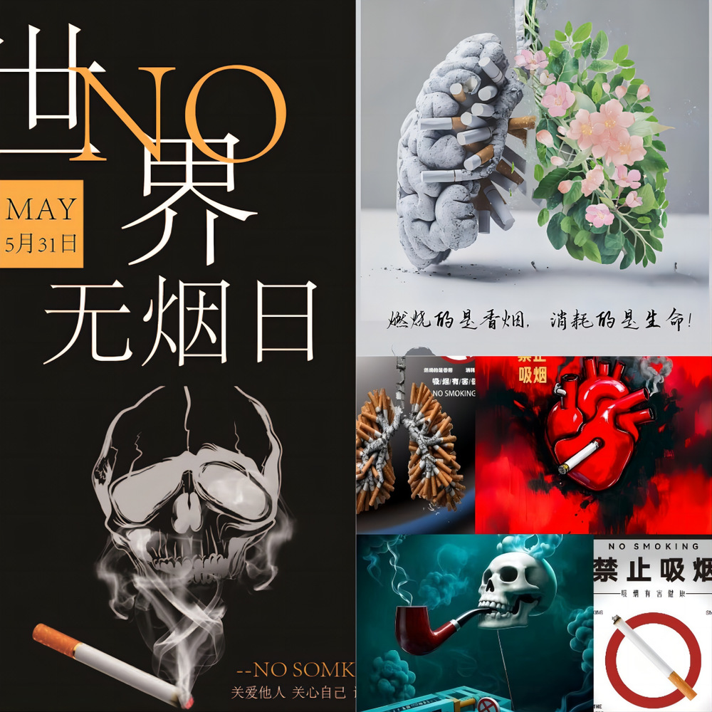 活动伊始,学院指导教师团队引导学生运用Photoshop、AI等数字工具进行创作。同学们巧妙地将传统水墨元素与当代设计理念融合,通过视觉隐喻呈现吸烟危害:被烟雾蚕食的大脑、被香烟灼伤的健康、渐变褪色的水墨肺叶……一幅幅作品中,既有烟头换生命的互动创意,也有吸烟加速衰老的警示对比,在色彩碰撞与构图巧思间传递无烟青春的正能量。