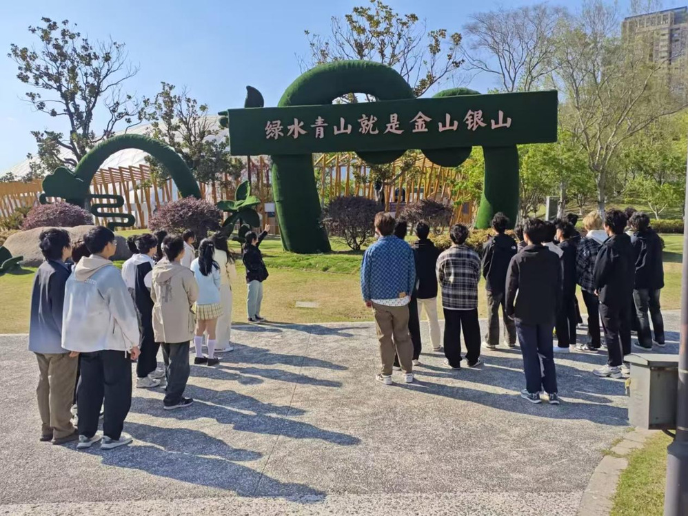 郭双燕老师带领2401网络班和2402网络班的80余名同学来到了江都区南水北调源头绿廊公园。此次实践教学围绕“生态文明与科技创新”展开,同学们首先参观了源头主题白色群雕,了解其象征意义。随后,同学们游览了江淮生态水系的微缩景观,郭双燕引导大家发现“高邮湖”等湖泊的造型,深入讲解了扬州如何通过治理水环境推动江淮水系生态建设,为“美丽江苏”作出的巨大贡献。在“绿水青山就是金山银山”的绿地景观前,郭双燕详细讲解了习近平生态文明思想中的“两山论”,强调了这一理念的重要性和现实意义。最后,学生们参观了白色贝壳状气膜馆,了解到其运用多项声学专利技术进行的“建声电声一体化”改造,直观感受到了科技创新之美。