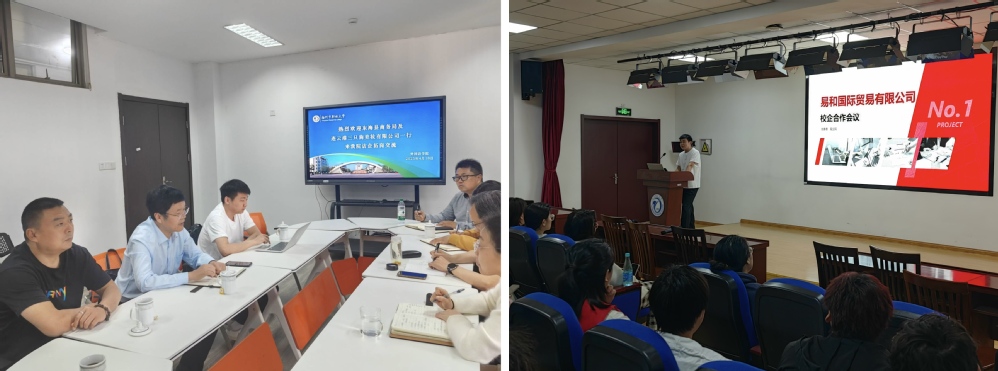 鲍宜乐、段立民与学院领导围绕企业用人需求、三方就实习岗位设置、学生实践培养方案、就业合作模式等内容展开了充分交流与探讨,并在诸多方面达成共识。