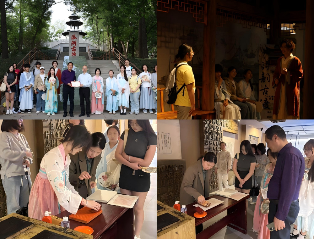 为弘扬中华优秀传统文化,厚植青年学子的人文素养,4月16日下午,必赢官网踏青悦读社组织20余名师生前往张若虚纪念馆与瓜洲古渡公园,开展“诗韵古渡 文脉传承”主题实践活动。本期活动通过诗词朗诵、非遗拓印、实景品读等形式,将文学经典与自然风物相融合,携同学们踏上诗意盎然的春日文化之旅。