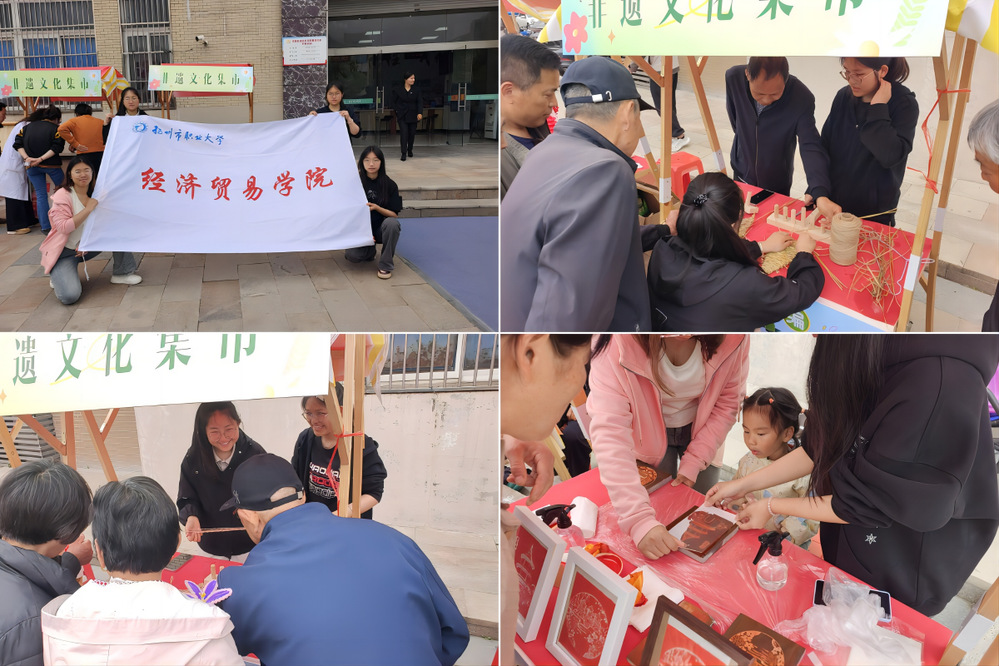 近日,经贸学院学生志愿者走进天顺花园社区非遗集市,为社区居民带去实践服务。