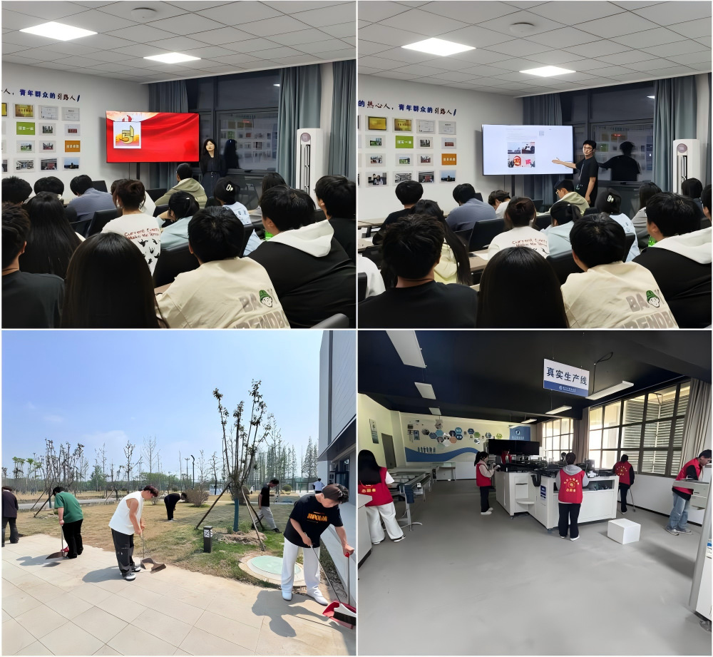 打扫劳动教育责任区、产业学院。4月23日中午,学院领导、辅导员带领入党积极分子、团员青年以及学生干部打扫劳动教育责任区的卫生,清理花圃草坪中的纸屑杂物。4月25日中午,光电创新实践社的同学们走进产业学院,开展卫生清扫和环境整治活动。