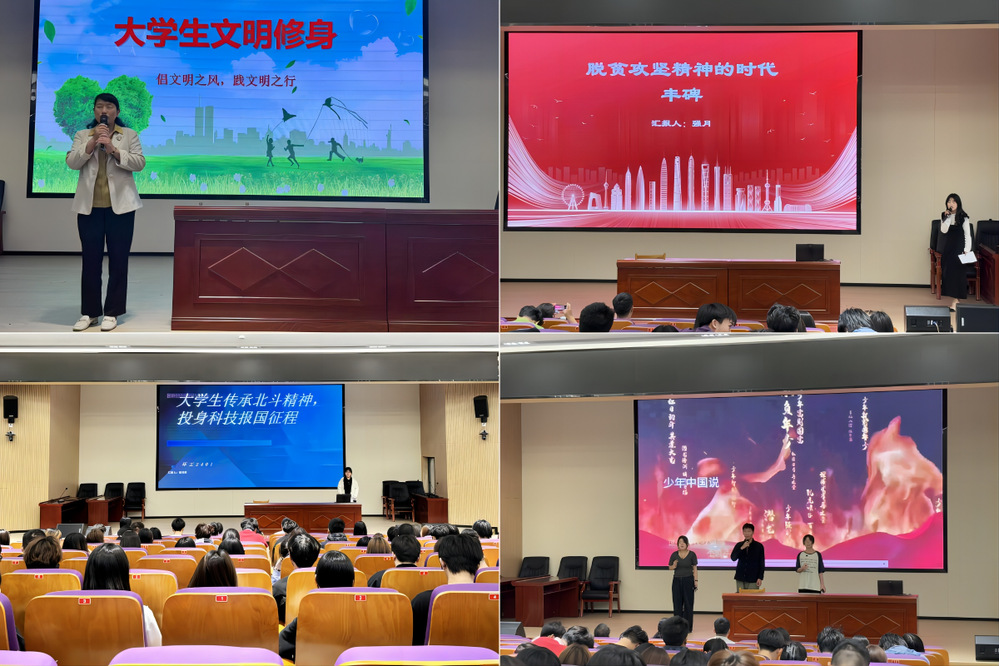 5月12日,资环学院在高邮湖校区泮塘报告厅举办大学生文明修身活动。活动以“修身养德树新风 精神领航启新程”为主题,以分享会的形式讲述五四精神、北斗精神、改革创新精神、脱贫攻坚精神等。学院党总支书记王海玫、部分班主任、2024级全体同学参加了活动。