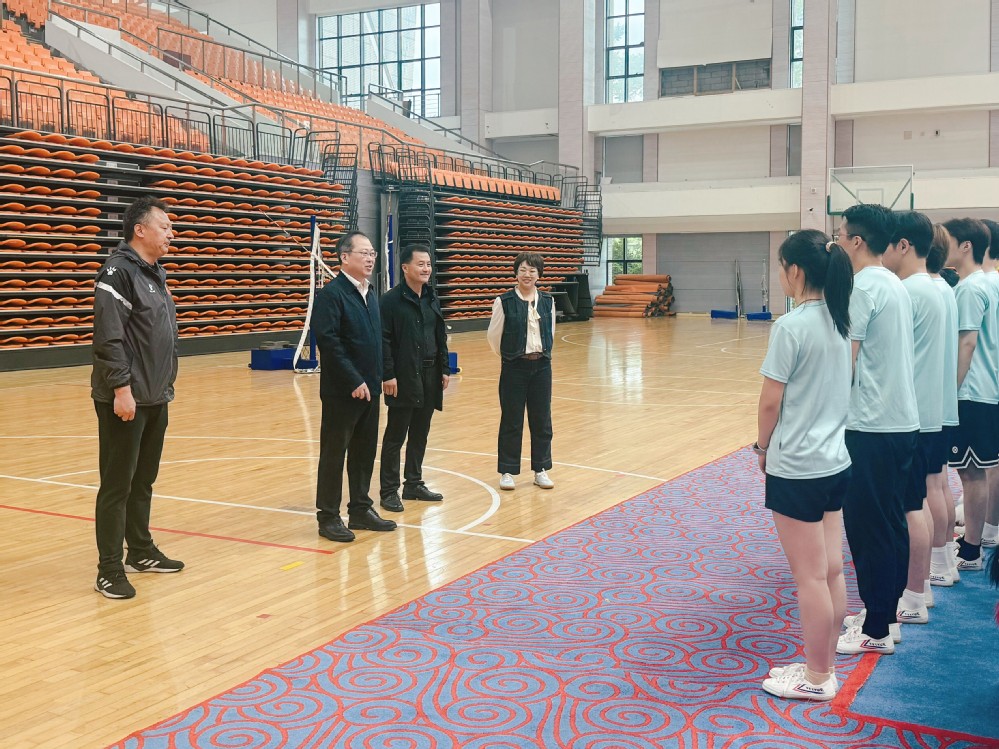 校领导现场观摩训练成果,详细了解了队员们近期的训练情况和生活状况,对大家的辛勤付出与竞技水平表示肯定。马顺圣强调,全运会是全国最高水平的体育盛会,是体育健儿们展示实力、追逐梦想的舞台,队员们肩负着为江苏省和学校争光的重任,希望大家在训练中保持积极的心态,克服困难,不断提升自己的竞技水平。周春光叮嘱队员们训练时一定要严格按照教练指导做好防护,以饱满的精神、昂扬的斗志投入到后续训练中,在全运会赛场上展现出最佳状态。