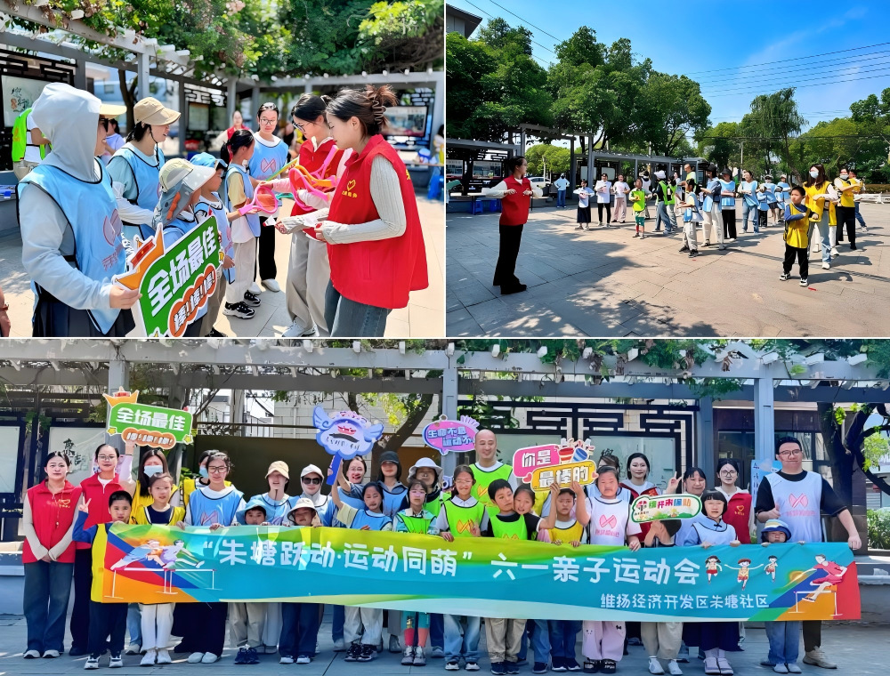 5月25日,朱塘社区运动广场上一片欢腾,由师范学院与朱塘社区联合开展的六一亲子运动会快乐开场。此次活动旨在增进亲子关系,吸引了众多社区内6-14岁儿童及其家长热情参与。