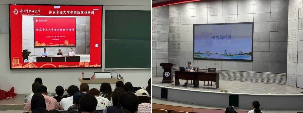 此次培训面向学院2023级、2024级全体学生及全体教师,共计450名师生参与。培训分为两天进行,主会场设在瘦西湖校区映月报告厅,分会场位于高邮湖校区。为确保培训效果,学院提前规划,制定了详细的培训日程和内容安排,并将参会学生分配至不同场地,确保各班级有序参与。培训内容涵盖乡村振兴战略、农业政策法规、农业产业化发展、粮食安全、休闲农业、古城保护以及创业典型案例分享等多个方面。