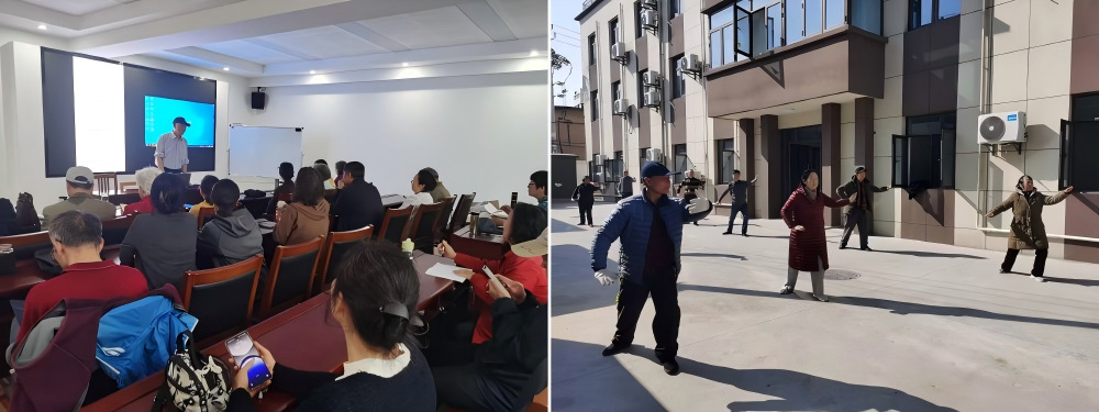 太极拳课程:传承国粹,强身健体。太极拳课程由资深太极拳爱好者、退休教师杨椿庭担任教练。杨椿庭老师亲身示范太极拳的基本招式,从起势到收势,一招一式都精准到位,学员们认真模仿,感受太极拳的刚柔并济、行云流水。通过太极拳的学习,退休老教师不仅锻炼了身体,还培养了内心的平和与宁静。大家纷纷表示太极拳课程让他们仿佛回到了年轻时在校园里锻炼的时光,重新找回了对运动的热爱。