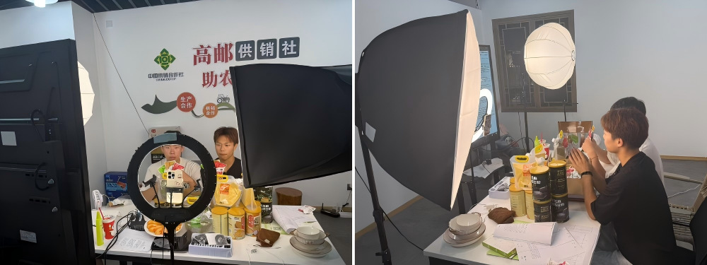 2025年6月中旬,张子旭和杨汉盟两位同学利用课余时间找到了高邮北门农贸市场的经营管理方凡泽供销社,提出了自己的想法,双方一拍即合。凡泽供销社提供直播场地和平台,他俩负责了解产品、选择产品,策划并实施直播的环节和内容等。
