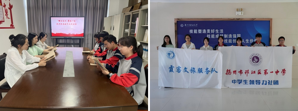 在互动交流环节,双方围绕非遗技艺的当代传承与创新发展展开了热烈讨论。邗江一中的同学们踊跃提问,就“非遗如何融入现代社会”“如何吸引青少年关注与参与”等话题,与两支志愿服务队的志愿者们进行了探讨和思想碰撞。