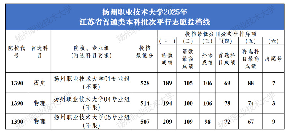 2025年本科招生,学校在江苏省普通类本科批次设置3个专业组。历史01专业组,投档线528分;物理04专业组投档线514分;物理05专业组投档线507分。各专业组同分考生排序项数据详实,为招生录取提供精准依据。